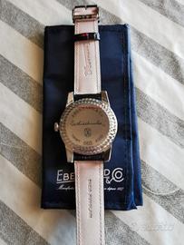 Scopri lo squisito orologio meccanico automatico da uomo Eberhard Tazio Nuvolari - 41032 CP, un omaggio al leggendario pilota da corsa. Questo segnatempo presenta una cassa color argento da 43 mm che trasuda eleganza classica. L'elegante cinturino in pelle nera si abbina perfettamente al quadrante nero, creando un look audace e sofisticato. Alimentato da un movimento meccanico automatico, questo orologio garantisce precisione e affidabilità. Abbraccia lo spirito della velocità e dello stile con l'orologio meccanico automatico da uomo Eberhard Tazio Nuvolari - 41032 CP, una fusione perfetta di design senza tempo e patrimonio automobilistico. Nuovo mai indossato come si vede in foto. Per ulteriori informazioni e foto contattatere luigi 3474600110