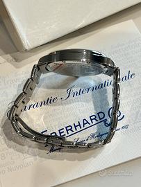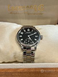 Orologio in condizioni di pari al nuovo,con ancora pellicola sul fondello e nella chiusura,completo di scatola controscarola in cartone e tagliando garanzia Eberhard - come da foto.