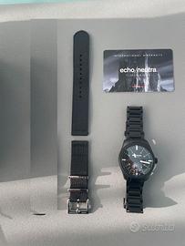 Vendo orologio come in descrizione in eccellenti condizioni. Per correttezza evidenzio solo due micro puntini bianchi sulla lunetta tra ore 12 e 1, veramente difficili da notare se non ispezionando l'orologio molto da vicino. Il bracciale è pari al nuovo così come il bracciale in tessuto che includo nel prezzo. Orologio difficile da reperire in questa configurazione. Vendo unicamente per sfoltire la mia collezione. Non ho bisogno di monetizzare, quindi cortesemente evitare proposte ridicole. Grazie.