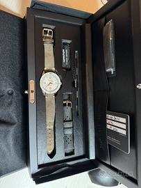 Come da titolo vendo echo neutra cortina 1956 color avorio ivory. Orologio fuori produzione non piu in vendita sui canali ufficiali in questa colorazione. Pezzo da collezione Perfettamente funzioante Acquistato a Settembre 2024 Vendo perche troppo grande per il mio polso Presente tutto il corredo con due cinturini originali uno usato e l’altro nero mai usato. Presente un lieve segno di usura sulla ghiera ad ore 12 come da foto, per il resto cassa vetro e fondello perfetti. Prezzo leggermente trattabile non rispondo ad offerte ridicole. Attualmente a listino ad 840 per le colorazioni standard. Preferibile scambio a mano oppure spedizione assicurata a carico dell’acquirente (€ 20) Pagamento tramite bonifico istantaneo oppure paypal amici. Prodotto originale