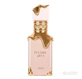 EclairediLattafa Perfumesè una fragranza del gruppo Floreale Fruttato Gourmand da donna. È una nuova fragranza.Eclaireè stato lanciato sul mercato nel 2024. Le note di testa sono Caramello, Latte e Zucchero; le note di cuore sono Miele e Fiori Bianchi; le note di base sono Vaniglia, Pralina e Muschio.