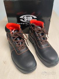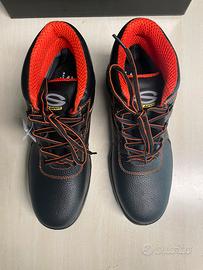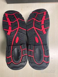SUOLA: PU/gomma. La particolare scolpitura della suola garantisce un effetto altamente drenante in presenza di liquidi. Zona mediana con scanalatura progettata per potenziare la presa sulle scale a pioli.