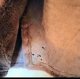 Elegante e caldissimo eco montone in morbido tessuto effetto scamosciato, con interno in pelliccia sintetica tono su tono. Il modello è doppiopetto con bottoni e presenta due ampie tasche frontali e dettagli in pelliccia ecologica su polsini, colletto e bordo inferiore.