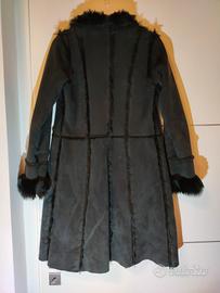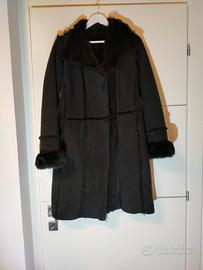 montone nero lunghezza midi, foderato in eco pelliccia, tasche e chiusura con laccetti. tg 42
