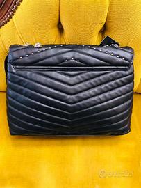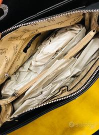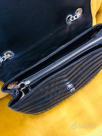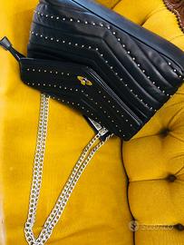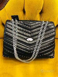 Per regalo da farsi poi non più fatto cedo : Borsa moda in ecopelle NERA con lavorazione borchie e tracolla a doppia catena e chiusura lampo interna con separatore e tasche ; NUOVA ancora con cartellino ( BORSA DI LAVORAZIONE ARTIGIANALE REALIZZATA DA MAESTRI DEL SETTORE ). La cedo per euro 65,00 con consegna a mano solo in zona Santa Maria a Vico ( Caserta ) oppure si può spedire con più euro 9,00 a vostro carico per spedizione TRACCIABILE e con corriere di Poste Italiane, grazie.