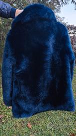 Bellissima, morbidissima e caldissima eco pelliccia colore blu del brand Jakke. Il brand si distingue per l'etichetta sulla manica in cui dichiara di non utilizzare pelo vero (free from fur).