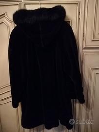 Ecopelliccia colore nero con cappuccio tg.42/44, chiusura tipo loden, lunghezza da spalla a fondo cm.90