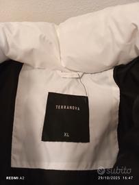 Piumino Terranova XL con imbottitura sintetica, bianchissimo, pulito, tasche con cerniera e tasca interna di sicurezza