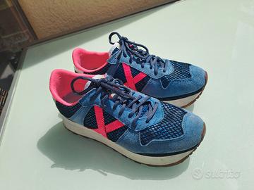 Scarpe sneackers Munich, leggere estive, bellissime, colore azzurro e inserti rosa/fuxia con parte luccicanti. Indossate solo una volta. Molto comode.