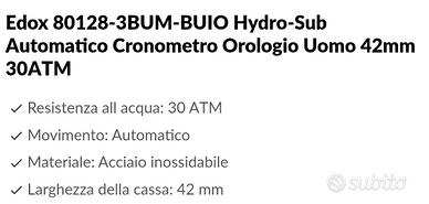 edox hydro-sub 1965,edizione limitata certificato cosc solo 500 esemplari orologio mai indossato come si evince dalla foto ancora con la pellicola esemplare 213.