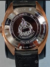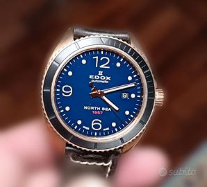 Edox north sea 1967 limited 300 pz. 189/320 CASSA IN BRONZO, ghiera in ceramica, difficile da reperire, 43mm, eccellenti condizioni. Cassa top, vetro top, ghiera top, fondello Micro irelines. Due cinturini originali nuovi + vintage after market montato. Solo card, non documenti. ATTENZIONE! la scatola è originale Edox del modello in acciao, non ha la valigetta. Orologio presente su altre piattaforme, No piazzisti, perditemo/ sciacalli. Non rispondo...