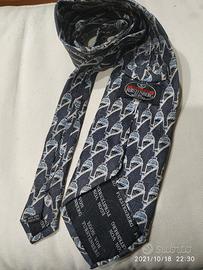 EGON VON FURSTEMBERG originale, ultima Cravatta in pura seta, firmata anche la fodera. fondo grigio e piccoli paracadute in bianco e blu. consegna a mano in roma eur e disponibile alla spedizione