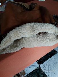 Tracolla vintage in pelle di montone rovesciato anni 80 color cuoio naturale "El campero" base in vitello piu' chiara