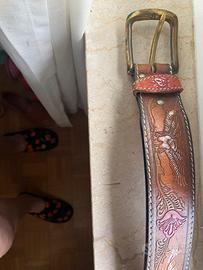Splendida cintira originale in cuoio dipinta a mano anni 80- lunga 85 cm