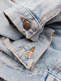 Raro giubbino jeans El Charro originale fine anni 80, epoca paninari. Taglio e vestibilità strepitose tipiche di quell'epoca. In condizioni vintage molto buone presenta qualche segno del tempo compatibile con la sua età. Made in Italy. Taglia XL: spalle 53 cm, vita 64 cm, lunghezza 59 cm.