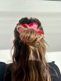 Scrunchies fatti a mano. Puoi scegliere tra: rosa, rosso, bordeaux, azzurro, giallo, verde acqua, beige