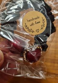 Elastico per capelli decorato con un ciondolo. - Ciondolo a forma di cuore con pietre. - Decorazione floreale sul ciondolo. - Etichetta handmade with love.