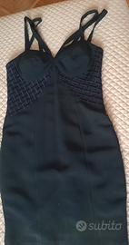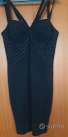 elegante abito in crepe blu scuro,con corpetto ricamato e spalline,aderente e sexy.Chiusura lampo dietro,di nota sartoria francese,in perfette condizioni,come nuovo