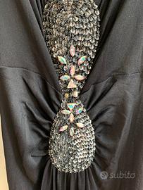 Scollo profondo con dettagli scintillanti. in jersey nero con importante dettaglio in strass sul davanti tg.M nuovissimo-