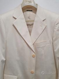 Abito completo color panna, ideale per cerimonie. In buoni condizioni, portato una volta, ben tagliato e molto elegante. Taglia 48.