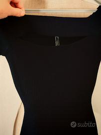 Stile: Maxi, aderente, maniche lunghe, scollo dritto che lascia le spalle scoperte. Nero classico e versatile.