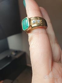 Anello di smeraldo con quattro diamantini in oro 18k molto elegante e vintage per uso quotidiano oppure per eventi o serate speciali