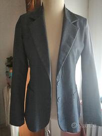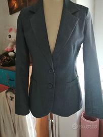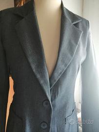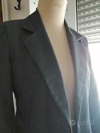 Elegante blazer grigio monopetto dal taglio elegante. - Chiusura a due bottoni. - Tasche frontali. - Collo a revers. Nuovo in perfette condizioni. Misure: lunghezza cm 65 dal collo, maniche cm 62, da spalla a spalla cm 38 circa, giro ascelle cm 49. Taglia 42