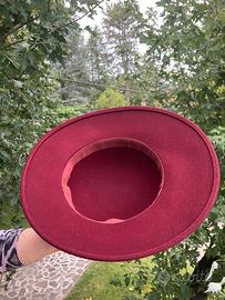 Cappello da donna in panno, colore bordeaux, con fiocco in tinta, come nuovo