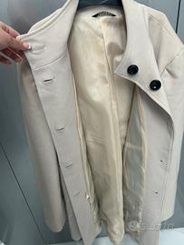 Elegante cappotto crema a collo alto taglia unica