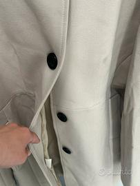 Ottime condizioni, come nuovo, indossato pochissime volte. Colore: Crema/Beige chiaro. Taglia unica ma veste una L XL Design minimalista ed elegante con collo alto e chiusura a bottoni neri a contrasto. Due tasche laterali discrete. Tessuto morbido e leggero, ideale per la mezza stagione. Vestibilità: Ampia e comoda, Non è più il mio stile, spero possa piacere a qualcun altro!