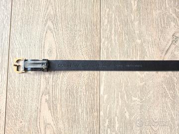 Elegante cintura Guess in vera pelle nera, con un design a squame e una fibbia dorata a forma di G.