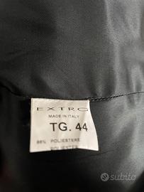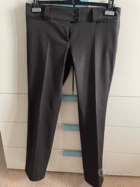 Elegante completo marrone composto da giacca a due bottoni con grazioso sbuffo sulla manica in taglia 44 e pantalone taglio a sigaretta, taschine anteriori in taglia 42.