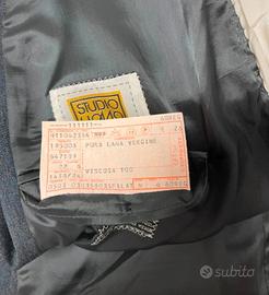 Elegante completo (giacca e pantalone) Valentino, pura lana made in Italy, colore grigio-blu, tessuto di grammatura medio-pesante, perfetto sia per occasioni che per lavoro quotidiano in contesto formale.