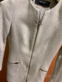 Perfetta per ogni occasione! come nuova e poco usata, causa aumento peso personale. Colore super versatile sia per outfit giorno Ufficio che sera! Color grigio perla con chiusura lampo e tasche anch’ esse con chiusura lampo..