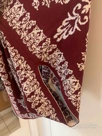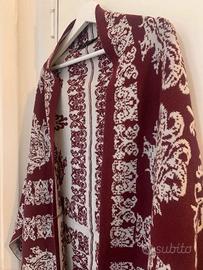 Splendida e versatile mantella kimono con un raffinato motivo nei toni borgogna e beige, perfetta per creare look a strati. Realizzata in un pregiato mix di 50% poliacrilico e 50% cotone, è morbida, calda e leggera. Il suo design fluido e aperto la rende una taglia L, ma si adatta comodamente a diverse fisicità. Un capo chic e senza tempo, perfetto per ogni stagione!