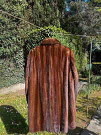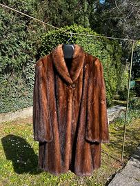 Elegante pelliccia originale SAGA MINK Royal in pregiato visone color mogano lucente. Modello classico e senza tempo, con ampio collo avvolgente, linea morbida e chiusura con bottone decorativo. Il pelo è fitto, morbido e brillante, in ottime condizioni. Interno foderato originale con etichetta SAGA MINK Royal. Capo raffinato e di grande qualità, perfetto per chi ama lo stile elegante e vintage. Marca: SAGA MINK Royal Materiale: visone originale Colore: mogano / castano scuro Modello: lungo, vestibilità morbida Condizioni: ottime, ben conservata
