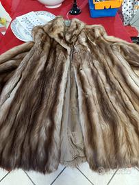 Vendo splendida pelliccia vintage (probabile visone/marmotta) con bellissima lavorazione verticale a bande. Il pelo è folto, lucido e di un caldo color castano con sfumature dorate.