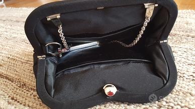 Elegante pochette nera da sera. Splendida e usata pochissimo. Provvista di catenella per utilizzo al braccio oppure a mano