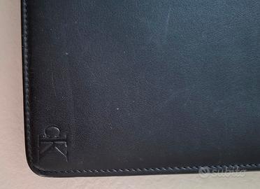 Elegante porta documenti o agenda Calvin Klein, perfetto per organizzare appunti e documenti importanti. Realizzato in pelle nera, presenta un design raffinato e discreto.