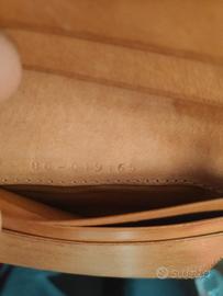 Elegante portafoglio bifold Etro vintage in pelle color cuoio, realizzato a mano a Milano