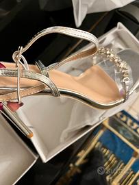 Scarpa gioiello argento, tacco 12, tg 41,5, MAI USATO, acquisto doppio. Ideale per cerimonie e feste.