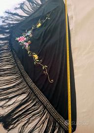Vendo splendido scialle da donna di colore nero, impreziosito da un delicato ricamo floreale multicolore che dona un tocco di freschezza e femminilità. Lo scialle è realizzato in tessuto morbido e leggero, perfetto per completare qualsiasi outfit elegante o casual. Presenta una lunga frangia decorativa lungo i bordi che aggiunge movimento e stile. Ideale per serate speciali, cerimonie o come accessorio chic per la stagione autunnale e invernale.