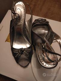 - Scarpe con tacco e cinturino e dettagli con fiocco e strass.