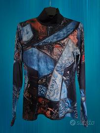 Elegante T-shirt a maniche lunghe primaverile da Donna Motivo barocco, collo alto, vestibilità regular