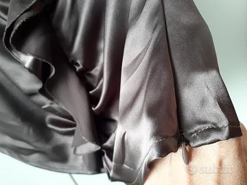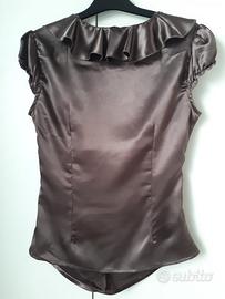 Elegantissimo top in lucido e sensuale raso marrone cioccolato cangiante rame, marcato Extyn, praticamente nuovo.