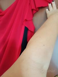 Elegante tuta donna curvy indossata una volta sola. tuta nera con cappa rosso bordeaux