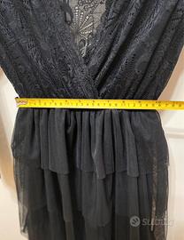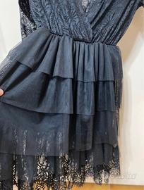 Vestito da donna elegante con dettagli in pizzo e gonna a balze.