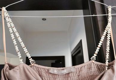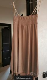 Elegante vestito lucido beige/oro, spalline removibili con perline per un tocco di eleganza in più. Gonna morbida, non segna. Usato una sola