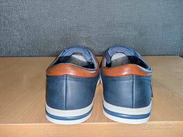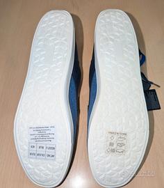 Toma in tela blu. - Dettagli in pelle marrone. Suola bianca 40 euro