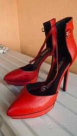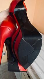 Eleganti scarpe rosse con tacco alto e plateau.